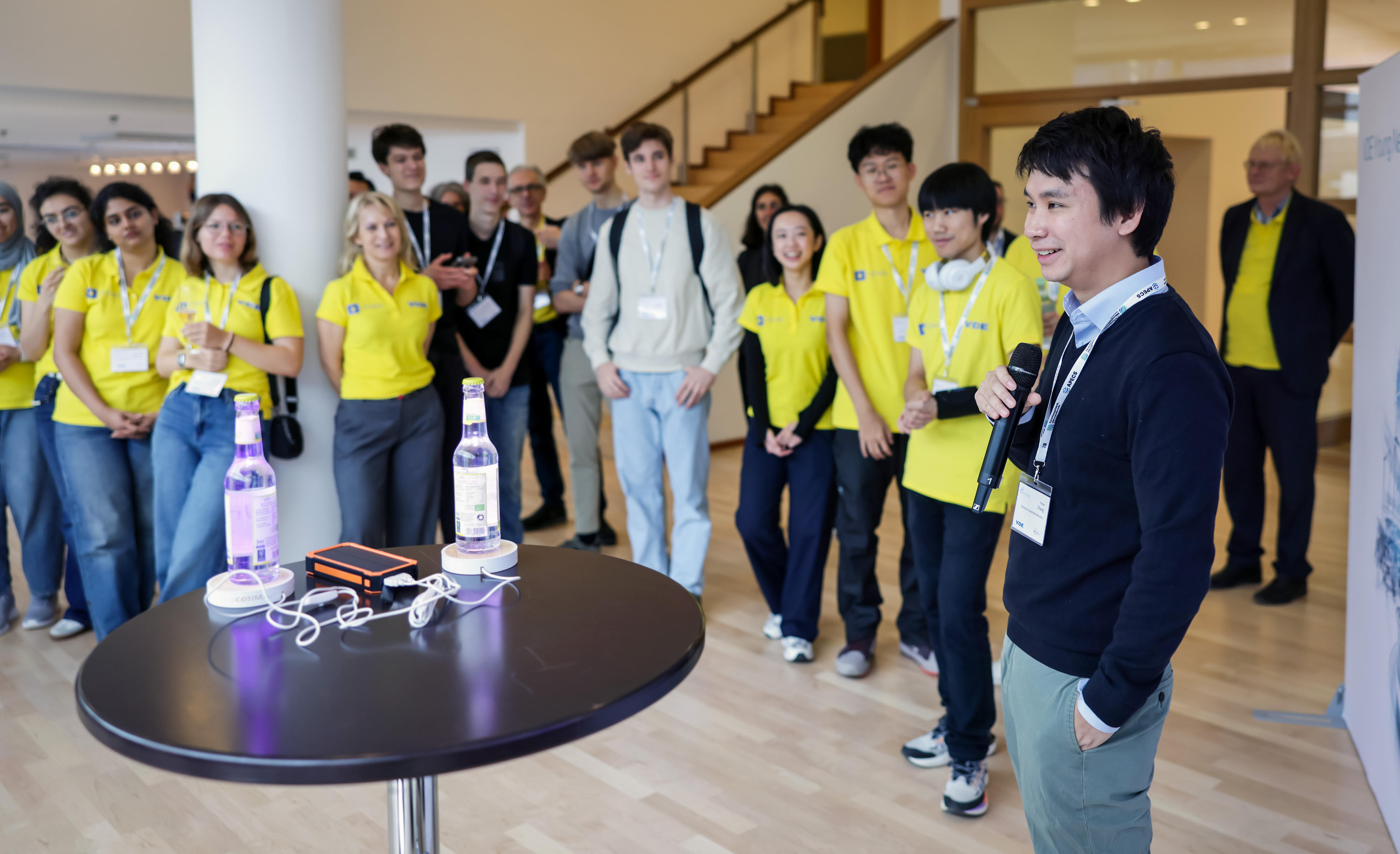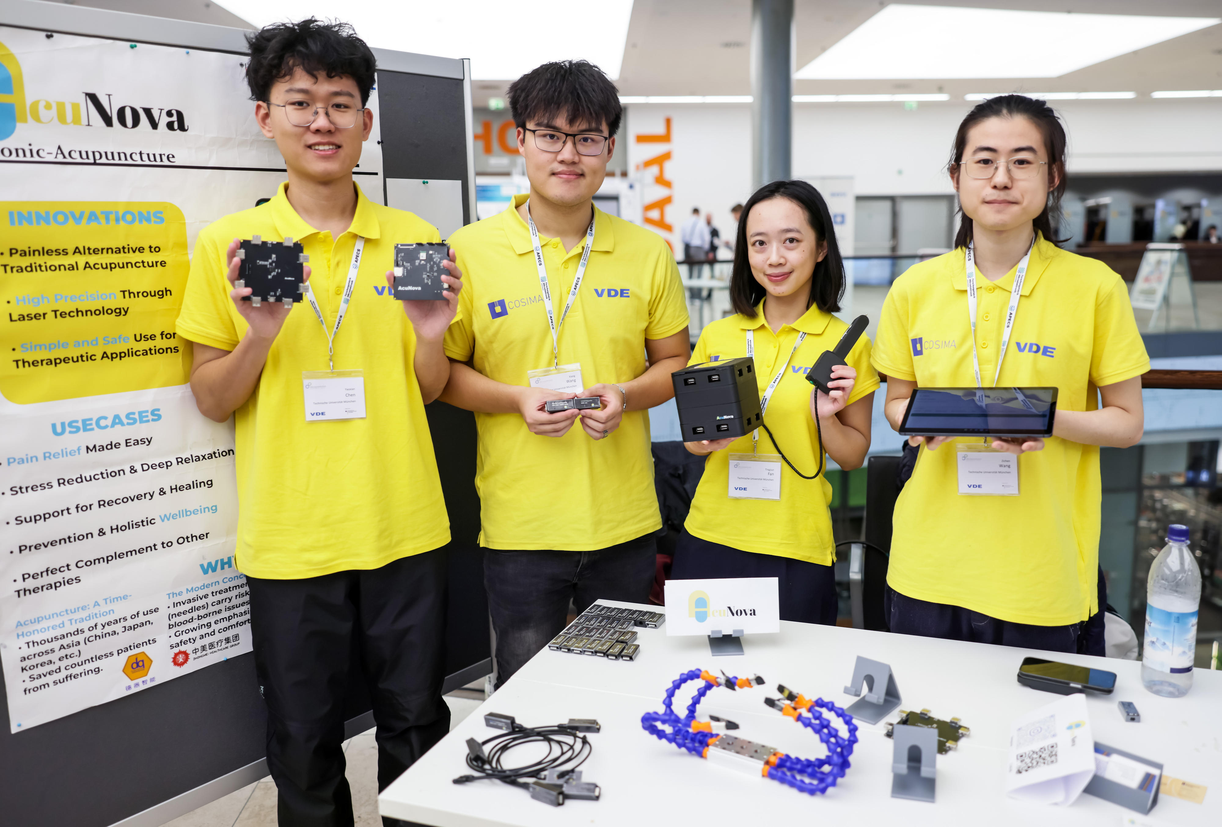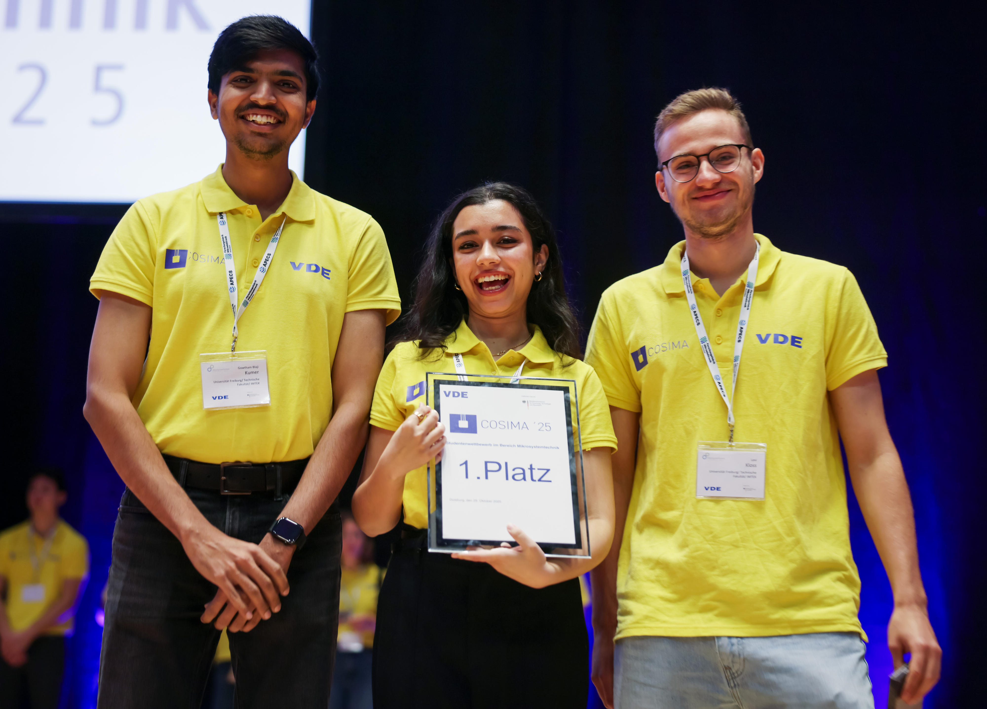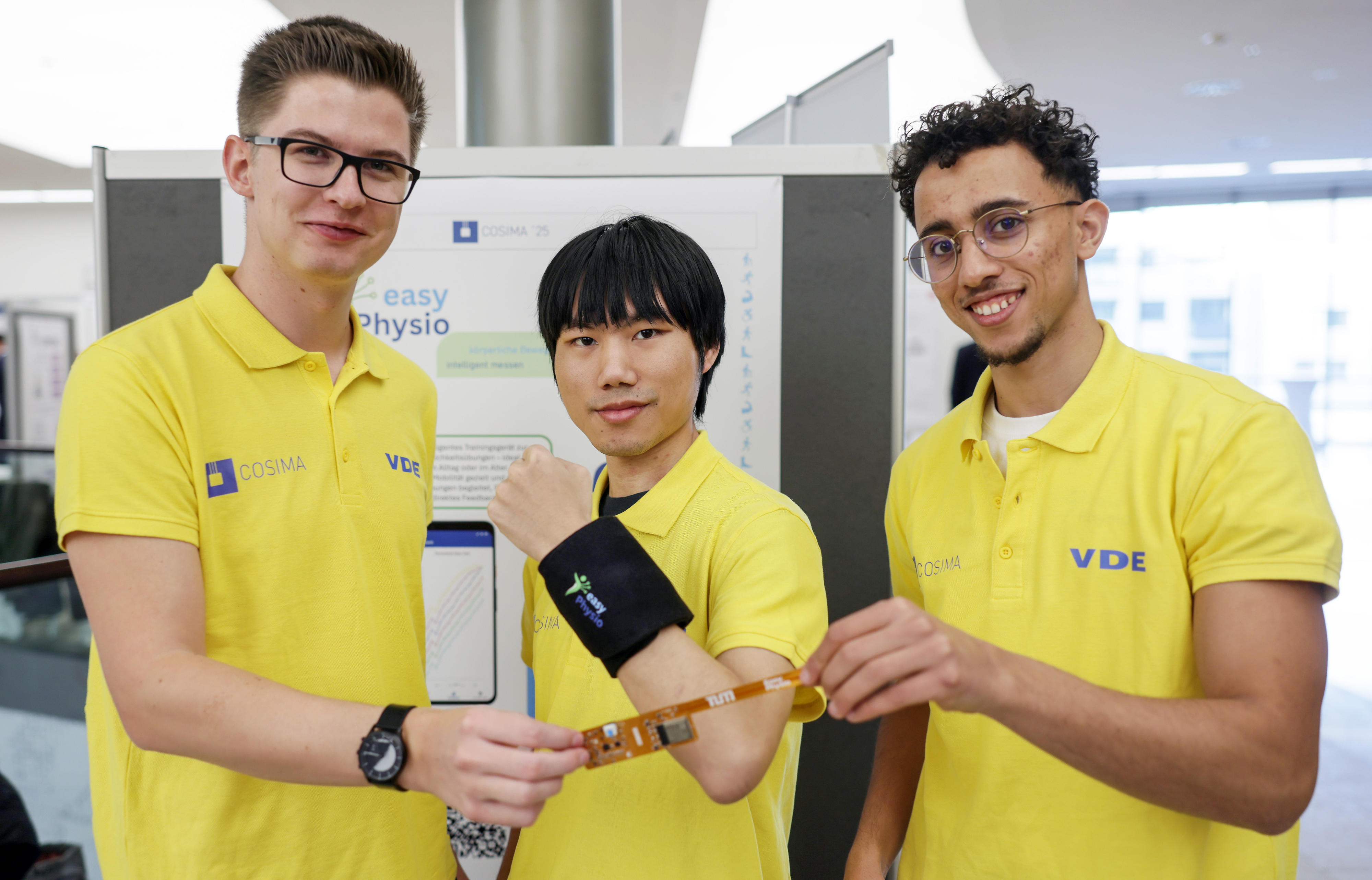 Den ersten Platz belegte das Team der Uni Freiburg von Prof. Amft, das von Dr. Mario Cypko betreut wird. „Mit dem Projekt EPIONE haben wir einen intelligenten Fahrradhelm entwickelt. Ein integriertes System warnt die Fahrerin oder den Fahrer vor epileptischen Anfällen“, erzählt Teammitglied Levi Kloos. „Wir wollen damit Betroffenen helfen, wieder sicherer auf der Straße zu sein und so ihr Leben selbstbestimmt zu gestalten.“ Das eingebaute trockene EEG-System lässt sich bequem und stabil tragen. Für die Übertragung der Daten ist am Hinterkopf die Elektronik verbaut: Sie besteht aus Mikroprozessor, Bluetooth-Modul und Akku. Die äußere Schale schützt bei Stürzen und verdeckt die Technik. Über eine Bluetooth-Verbindung analysiert eine Smartphone-App mithilfe von Machine Learning die EEG-Daten. Somit lassen sich epileptische Anfälle frühzeitig erkennen, Nutzer werden über LEDs und einen Lautsprecher gewarnt. „Noch befinden wir uns im Masterstudiengang, wir wollen aber das Projekt bis zur Marktreife weiterentwickeln“, verspricht Levi Kloos. Weitere Teammitglieder sind Lea Jourdan, Revati Sule und Gowtham Balaji Kumar. Für den ersten Platz erhielt sein Team ein Preisgeld von 2.000 Euro.
